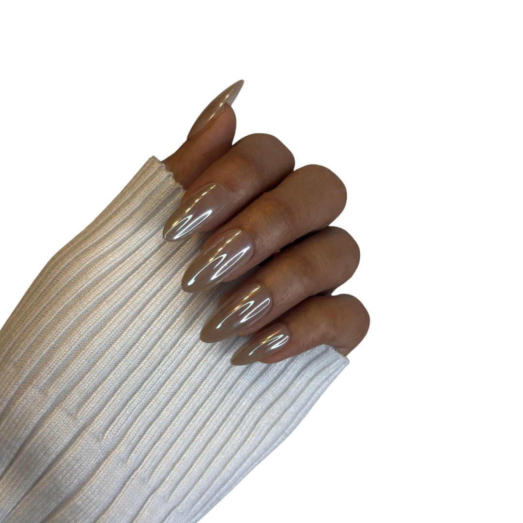 Cocoa is rich, glossy, and undeniably luxe. This brown chrome set melts into the nail with a soft reflective finish that feels modern and expensive. Neutral but bold, it’s the perfect balance of understated and statement — ideal for elevating your everyday look.