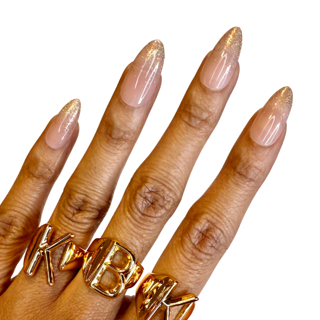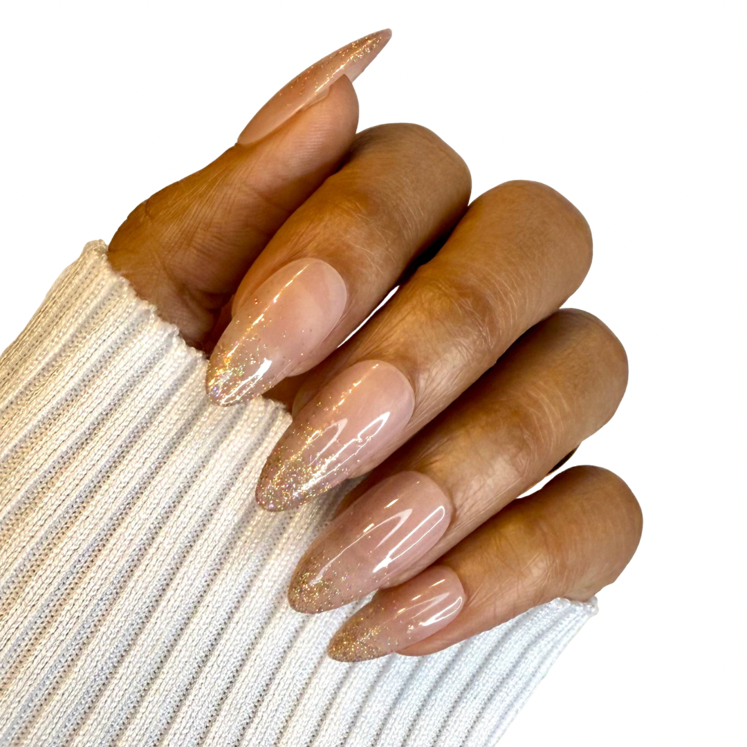 Fantasy is subtle sparkle done right. A sheer nude base keeps the look neutral and sophisticated, while glitter tips add just enough glow to catch the light. Elegant, understated, and effortlessly luxe — this set is perfect for soft glam moments.